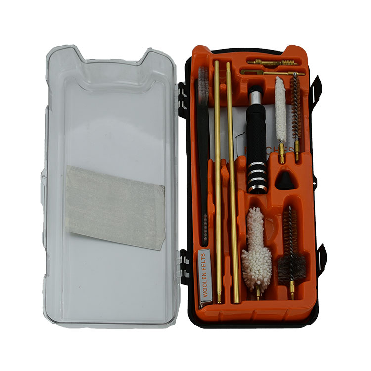 Τα συμπαγή κιτ καθαρισμού όπλων σας παρέχουν τα πλήρη επαγγελματικά εργαλεία καθαρισμού για να συναντήσετε διαφορετικά διαμετρήματα όπλων. Οι δίσκοι με κυψέλες σας βοηθούν να τις συλλέγετε τακτικά. Ο μικρός όγκος και η ισχυρή θήκη μπορούν να σας επιτρέψουν να τα τοποθετήσετε σε θήκες όπλων ή τσάντες. Οι σειρές είναι χωρίς μπουκάλι λαδιού.