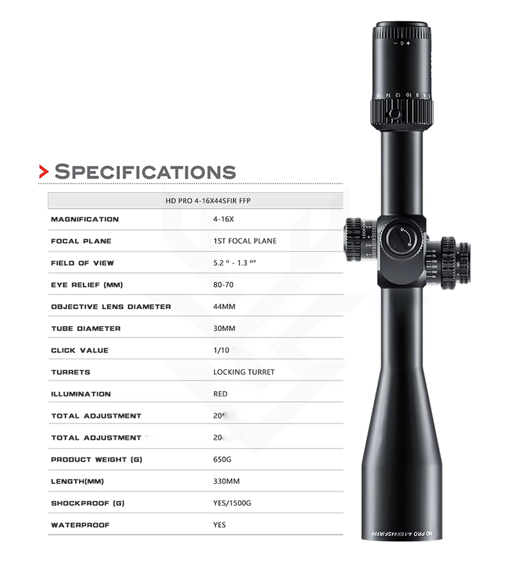 Optics HD PRO 4-16X44 SFIR FFP High Shock Resistance Hunting Scope Tactical Long Range Shooting 30mm Tube