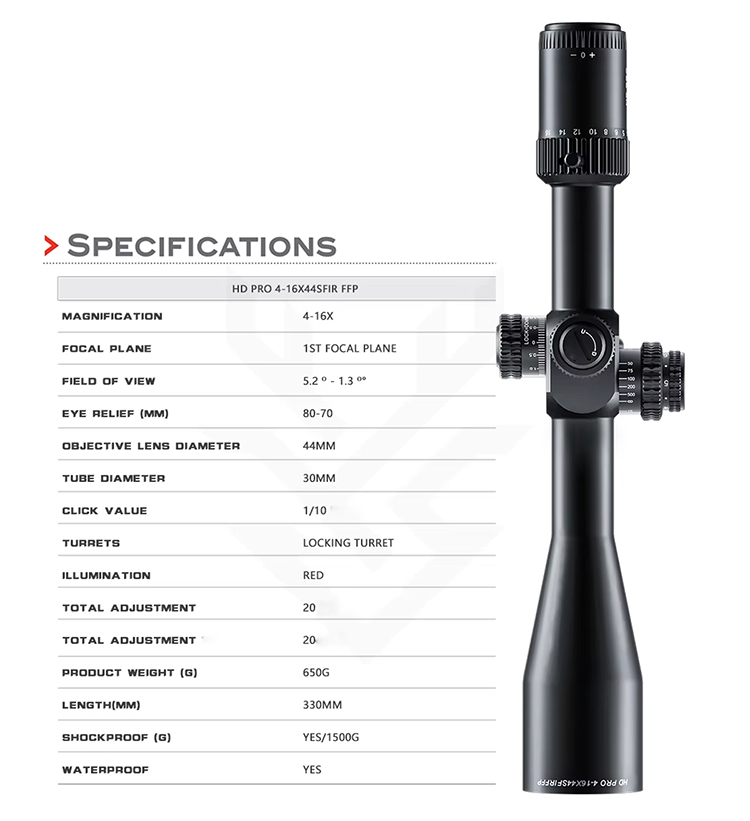 Optics HD PRO 4-16X44 SFIR FFP High Shock Resistance Hunting Scope Tactical Long Range Shooting 30mm Tube