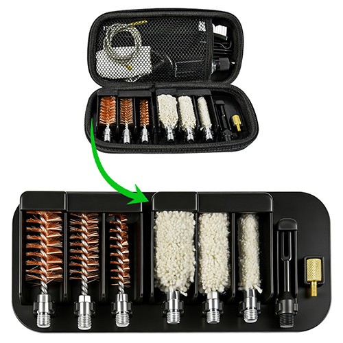 Το κιτ καθαρισμού κυνηγετικού όπλου περιλαμβάνει 3 μεγέθη (12/16G, 20G, 410). ορειχάλκινες βούρτσες και
