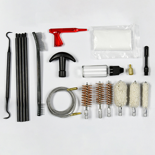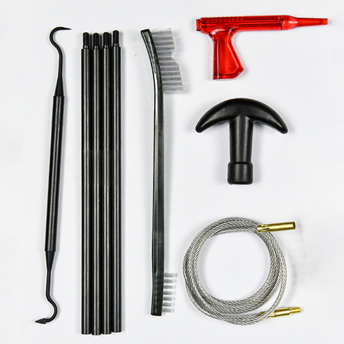 Το κιτ καθαρισμού κυνηγετικών όπλων περιλαμβάνει 3 μεγέθη (12/16G, 20G, 410). ορειχάλκινες βούρτσες και βαμβακερές σφουγγαρίστρες, 4 καλάμια 1 καλαμπόκι. Άμμος και μαύρο χρώμα για επιλογές.