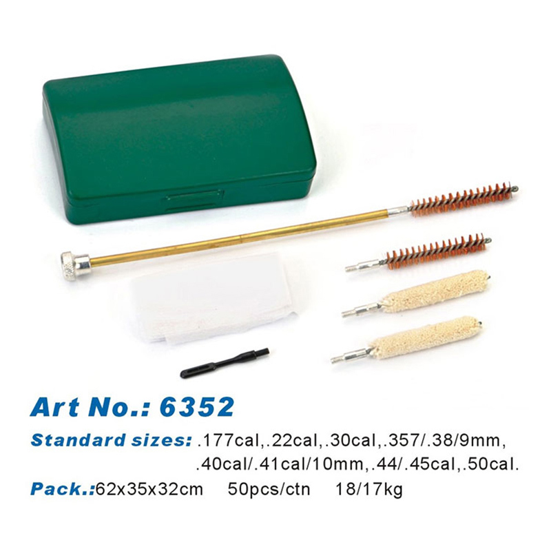 Κιτ καθαρισμού πιστολιού με κυρτή πλαστική θήκη. Η κυρτή πλαστική θήκη είναι αντιολισθητική στο τραπέζι. 2 ορειχάλκινη βούρτσα και 2 βαμβακερές σφουγγαρίστρες. Εάν το ένα έχει εξαντληθεί, μπορείτε να χρησιμοποιήσετε το επόμενο. Είναι καλό για τον καθαρισμό πιστολιού 9mm.