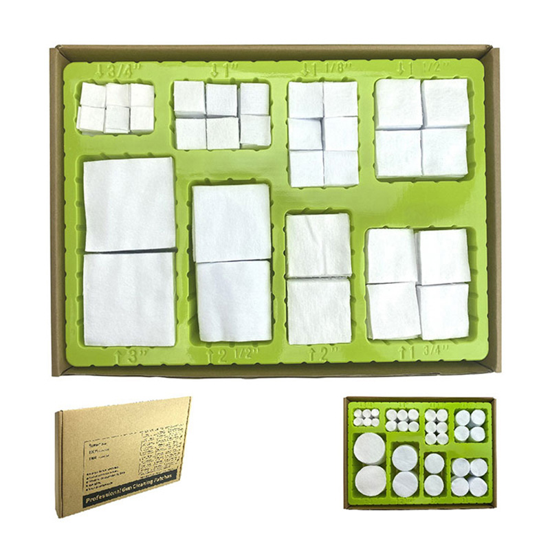 Σετ μπαλώματα καθαρισμού όπλων Βαμβακερή φανέλα Τετράγωνο/Στρογγυλό 8 μεγέθη για όλα τα διαμετρήματα σε 1 Universal Pack για Τυφέκια Πιστόλια Χειρόβια Κυνηγετικά όπλα αερόβια όπλα