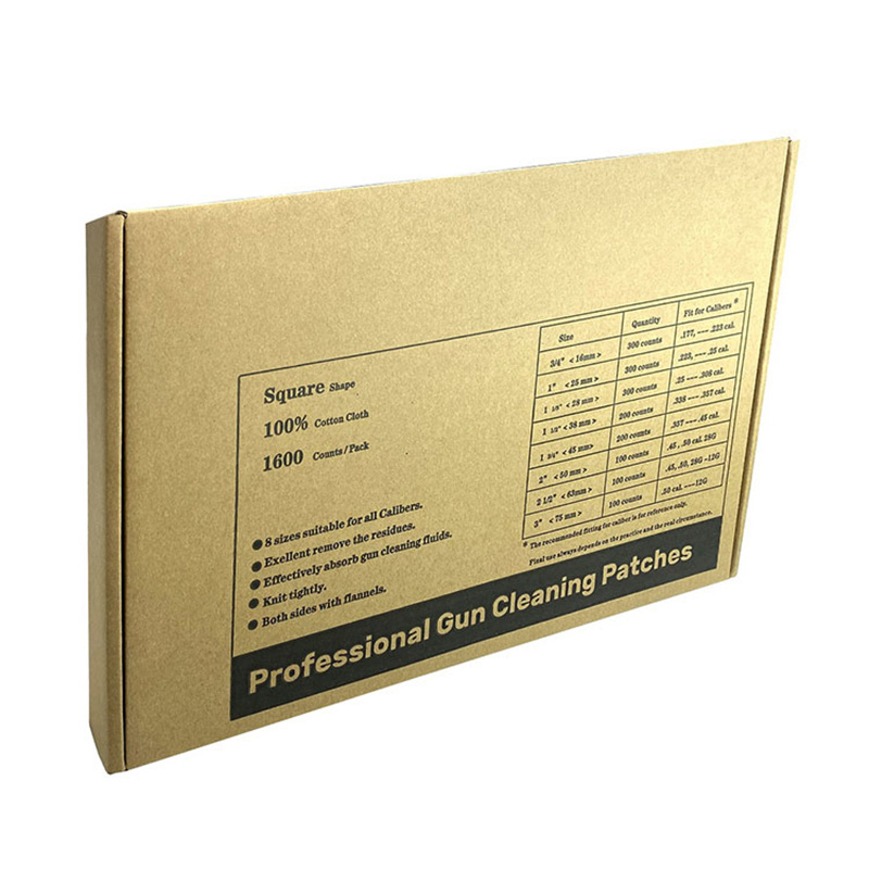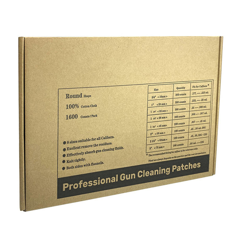 Λευκό βαμβακερό πανί γενικής χρήσης τετράγωνα μπαλώματα καθαρισμού όπλων blister box 8 μεγέθη, 1600 μετρήσεις ● Τα μπαλώματα καθαρισμού 【Όλα σε ένα σύνθετο πακέτο】 8 μεγεθών μπορούν να χωρέσουν για όλα τα πυροβόλα όπλα διαμετρήματος από 0,177cal. σε Shotgun 12G? Εξοικονομήστε χρήματα και χρόνο για να αγοράσετε διαφορετικά μεγέθη για τα πυροβόλα όπλα διαφορετικού διαμετρήματος. ● 【Βαμβακερό υλικό υψηλής απορροφητικότητας】 100% βαμβακερό υλικό με υψηλή απορρόφηση. Απορροφά γρήγορα τα υπόλοιπα υγρά, αφαιρεί υπολείμματα και σκουριές από την επιφάνεια της οπής. ● 【Υφασμα φανέλας】 Η επιφάνεια υφάσματος φανέλας ενισχύει πολύ την καθαρή απόδοση. ● 【Κάθε μέγεθος σε δίσκο】 Συσκευάζουμε τα 8 μεγέθη ανά 8 δίσκο. Και κάθε δίσκος με το μέγεθός του τυπωμένο δίπλα στο δίσκο. Εύκολο να βρείτε και να πάρετε το σωστό μέγεθος από τη συσκευασία. ● Το λογότυπο 【OEM】 Το λογότυπο πελάτη είναι αποδεκτό.
